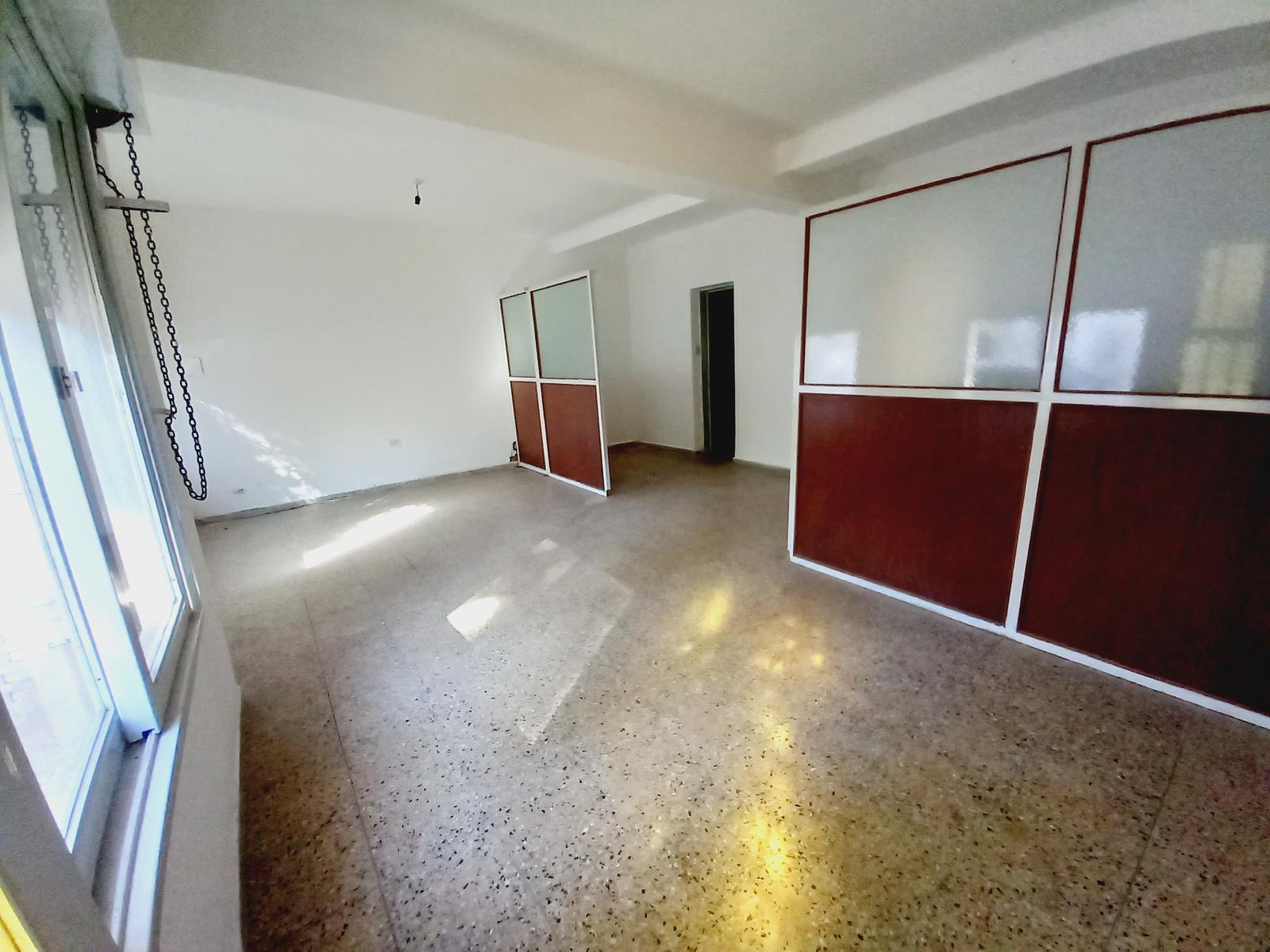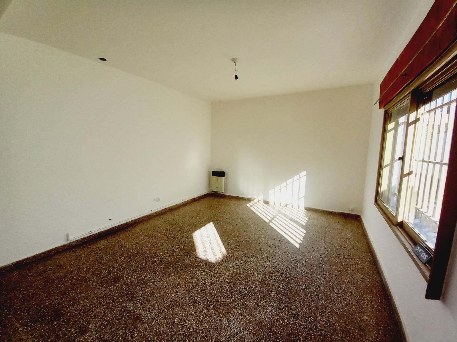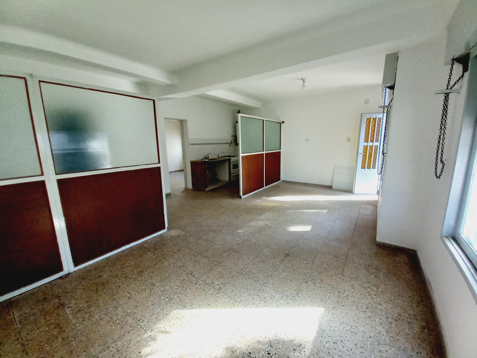 Amplio Living comedor con cocina semi integrada amoblada con anafe, horno y calefón a gas.