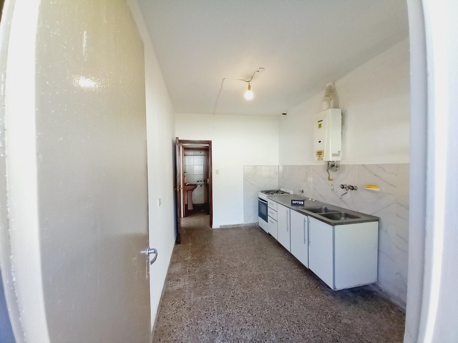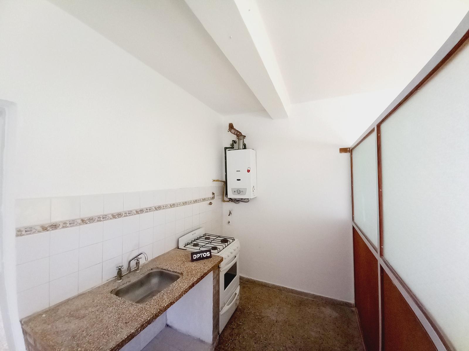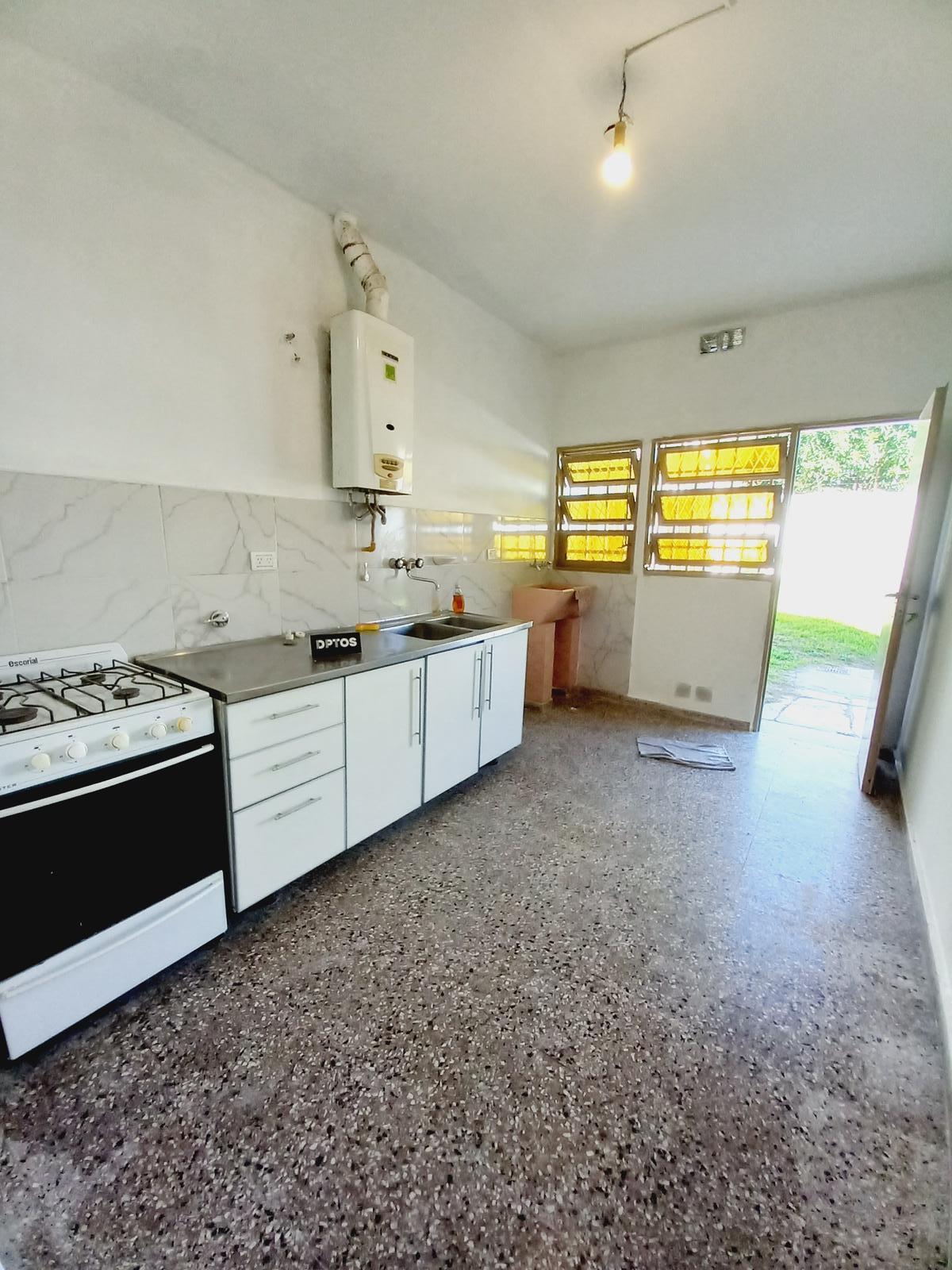 Cocina con salida al patio, amoblada con anafe, horno y calefón a gas.